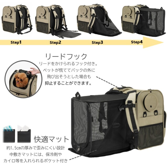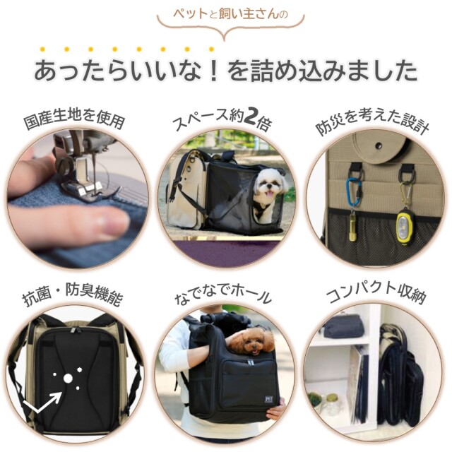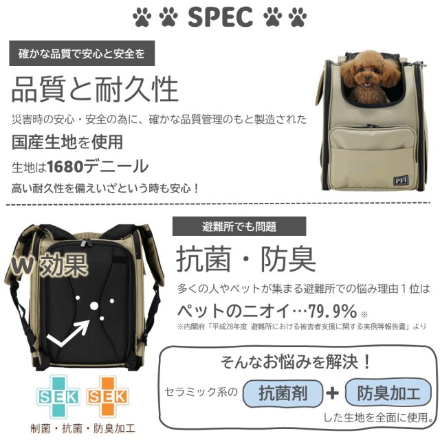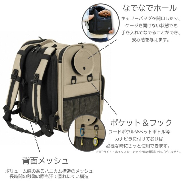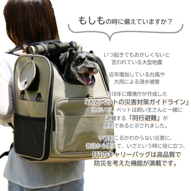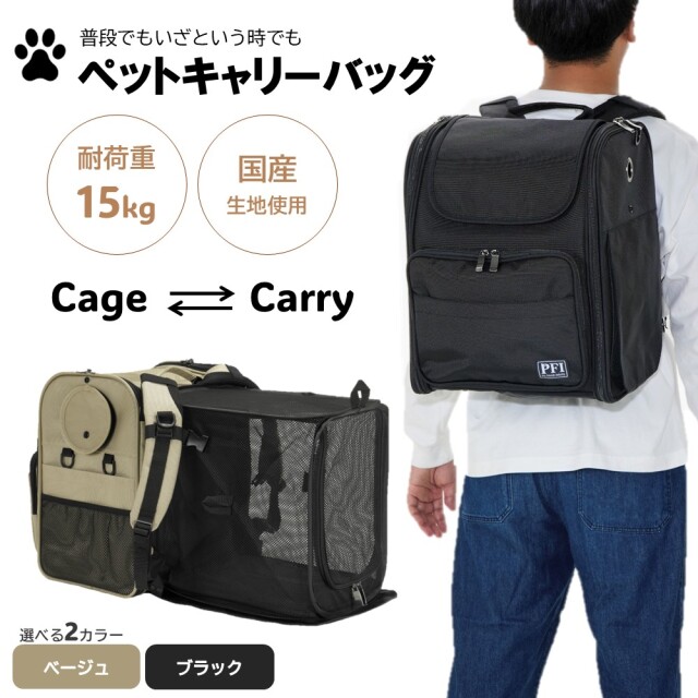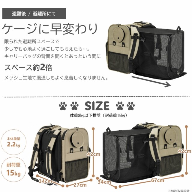 両手がフリー になるリュックから移動先 では ケージ として病院や災害時ペットとの 避難に大活躍のキャリーバック