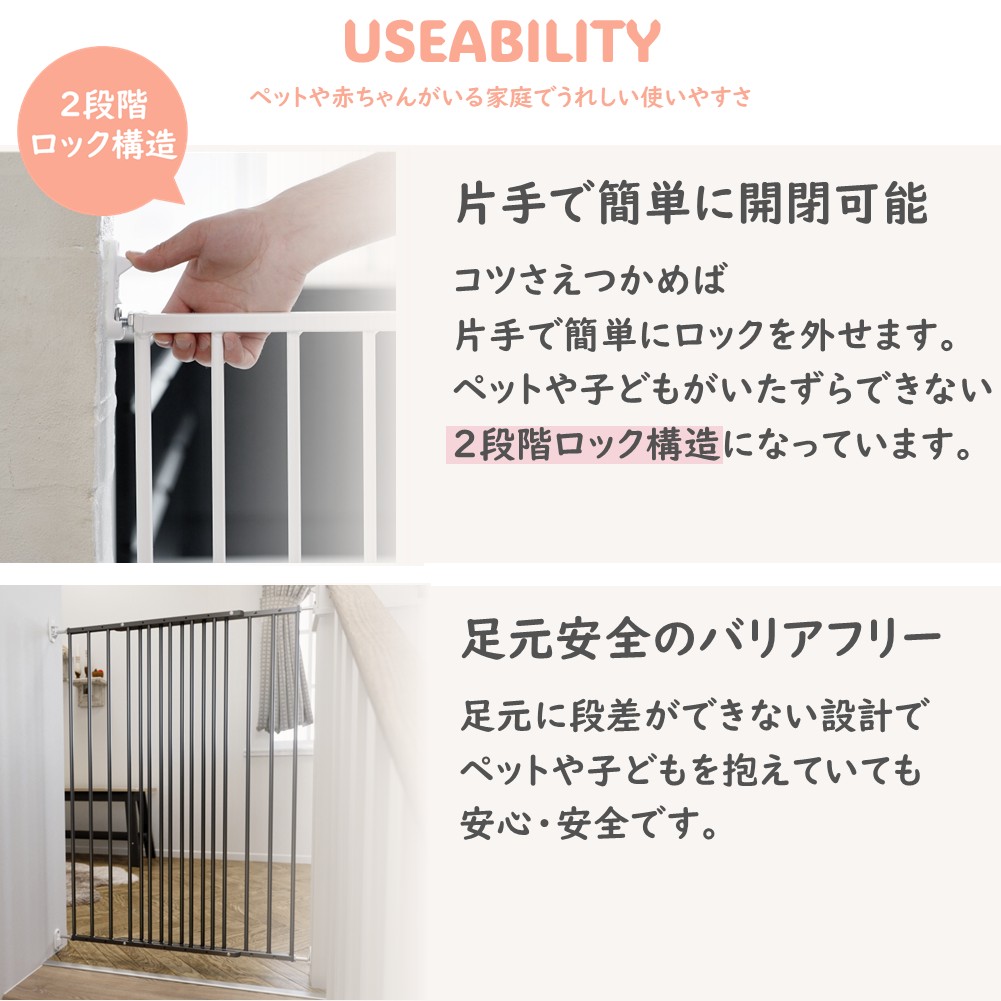 2枚のパネルをスライドさせて設置幅を固定。設置や取り外しもとても簡単なバリアフリータイプは階段やバルコニー出入り口におすすめです!
