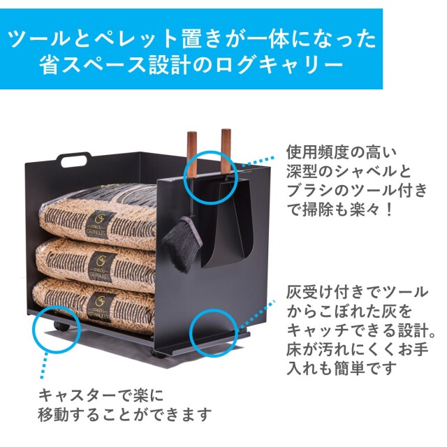 ペレットの補充に便利な深型のシャベルとブラシ付。