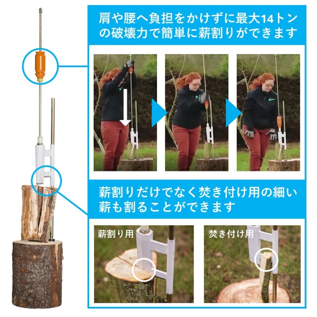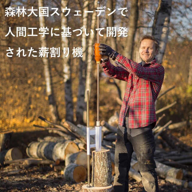 森林大国スウェーデンで人間工学に基づいて開発、デザインされた薪割り機。北欧を中心に50万台以上も販売されており、狙った位置に最大14トンの破壊力でヒットさせ薪を割ることができます。約9.5kgと手軽に持ち運びができて使用場所を選ばずに、肩や背中の負担も少ないので、女性やお年寄りにも簡単に薪割りを楽しめるのが魅力。薪割りを、家族のイベントにしてみてはいかがでしょうか?